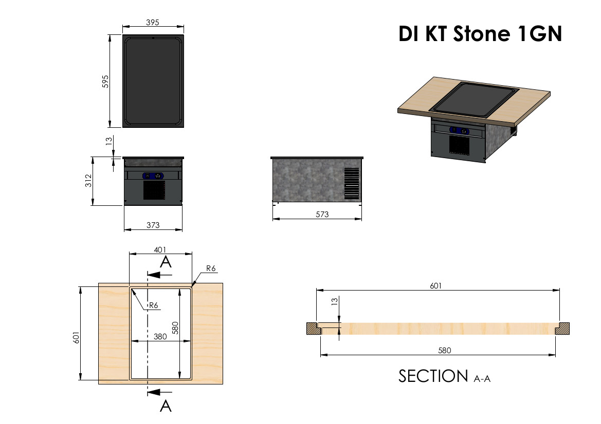Drop-In külm kivitasapind 1GN